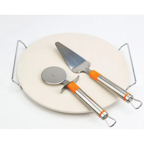 ALVA 30cm Pizza Stone With Lifter & Cutter | Ceramic stone Rolling Pizza Cutter