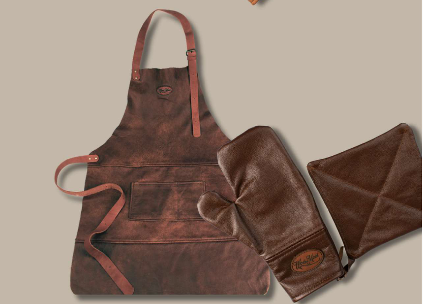 Leather Apron with gloves and potholder.