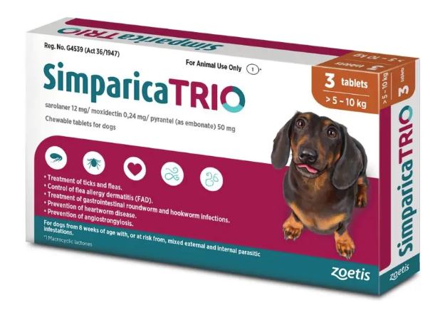 Simparica Trio – Caramel x 3 – 5.1KG – 10KG