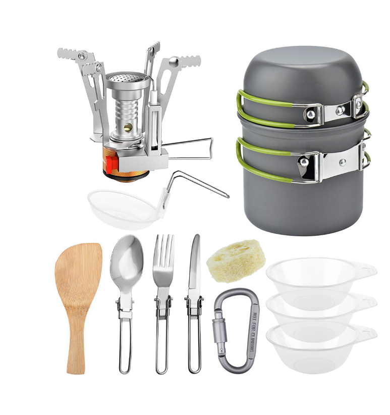 Ultra-Light Portable Outdoor Camping Cookware Stove Cutlery 13 Piece Set